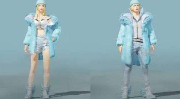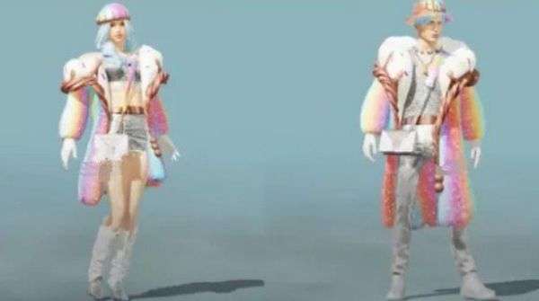 首先,槿夕穿的第一款服装是幻彩马卡龙。这套时装在海报中还是非常漂亮的,拥有彩虹般的色彩。而且因为是大氅的缘故, 很有名媛范儿。但是从游戏中的视角看,它就没有那么漂亮了。从游戏中的视角只能看到背面,从背面看,它显得很臃肿。带上背包感觉很滑稽的样子,完全没有了海报上的美感。