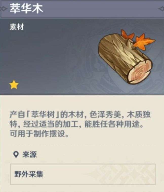 萃华木主要采集点在[星坠山谷,碧水原](其实就是果树啦,结果子的树砍了都掉萃华木)