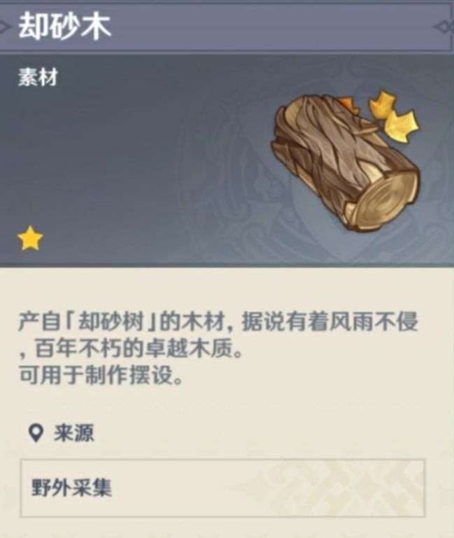 却砂木主要采集点在[珉林,璃沙郊](就是璃月的普通大树)