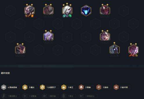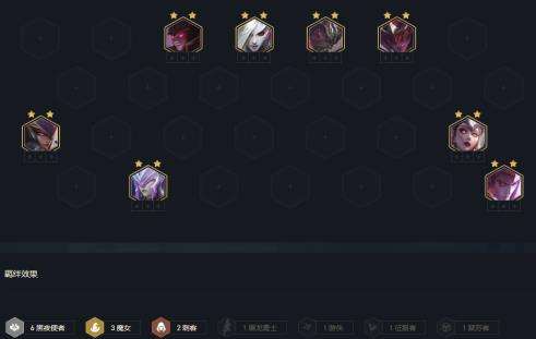阵容羁绊:关键就是6黑夜与三魔女。阵容主C莫甘娜,副C月男,主坦诺手。
