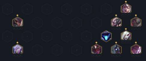 棋子构成:诺手、亚索、莫甘娜、李青、冰女、妖姬、皎月、千珏(9人口)、月男。