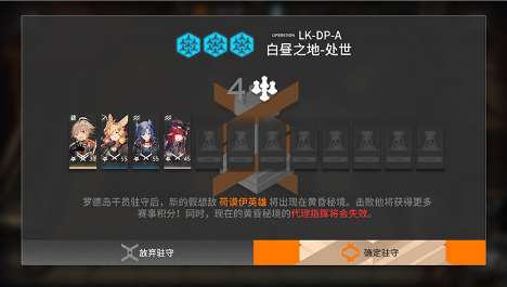 关卡不消耗理智,首次通关后可获得赛事奖章。完成关卡后,可以选择是否让本次作战编队中的干员在该据点进行驻守,驻守中的干员