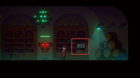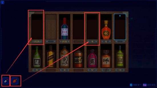 然后来到房间最左边的酒柜,交互触发小游戏。把两瓶酒分别放入下图对应的位置中。