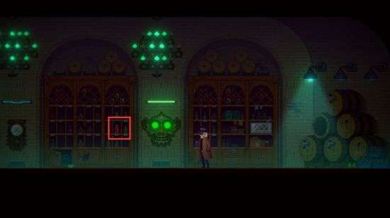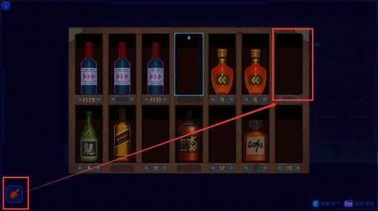 然后钟表右边的柜子上会再出现一瓶酒,拿上回到最左边的酒柜。
