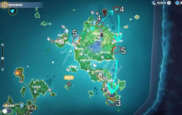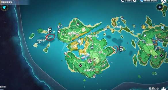鸣神岛五个地方,可以采集到21朵海灵芝。