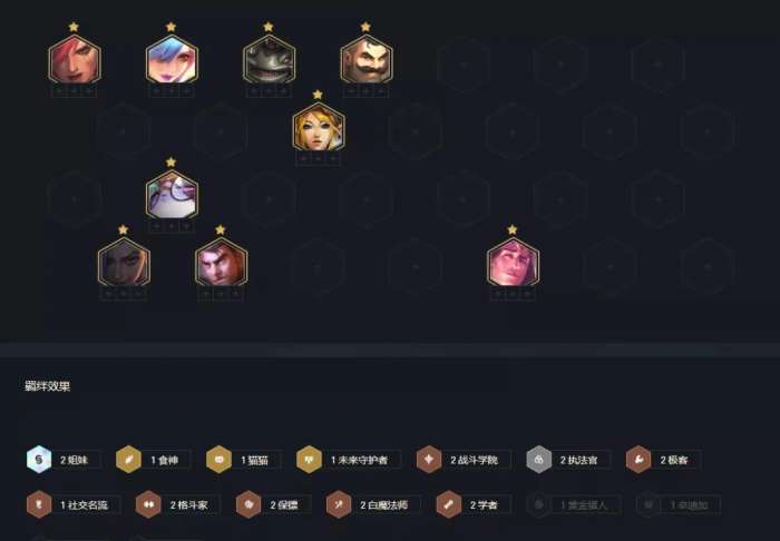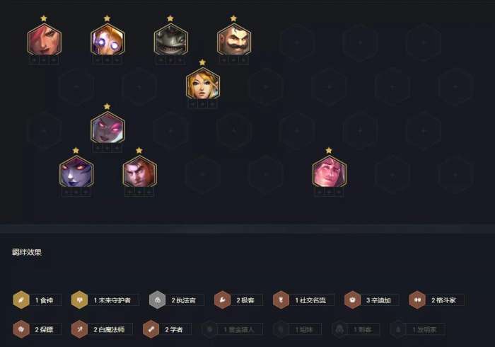 这套阵容并不是把棋子直接来凑羁绊,而是每个棋子都有自身的作用,且每个棋子的羁绊与技能效果都能与阵容产生联动,这样就会产生1+1>2的效果。而大多数的强势阵容,也都是利用1+1>2的效果才能成为强势阵容的。