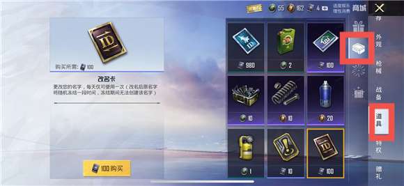 3、然后下滑页面就可以找到改名卡,一张改名卡需要花费100 游戏点券。