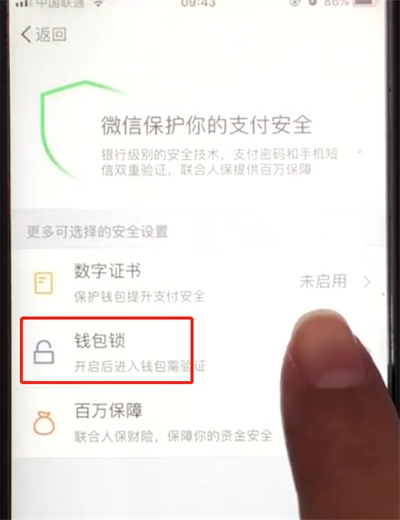 4、进入支付安全之后,点击钱包锁,选择手势密码解锁,进入后,需要输入支付密码以验证身份;