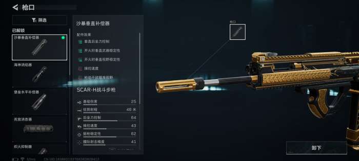 枪口选择沙暴垂直补偿器,大幅度减少后坐力控制以及开机视野稳定性。