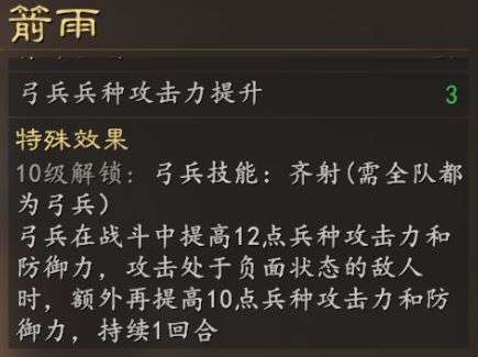 该阵容前3回合输出极高,与【箭雨】科技十分适配。PVP除了被召唤盾克制,100%完整度的周瑜弓不虚其他所有阵容,首回合周瑜连续释放两个主动战法基本就拿下比赛。