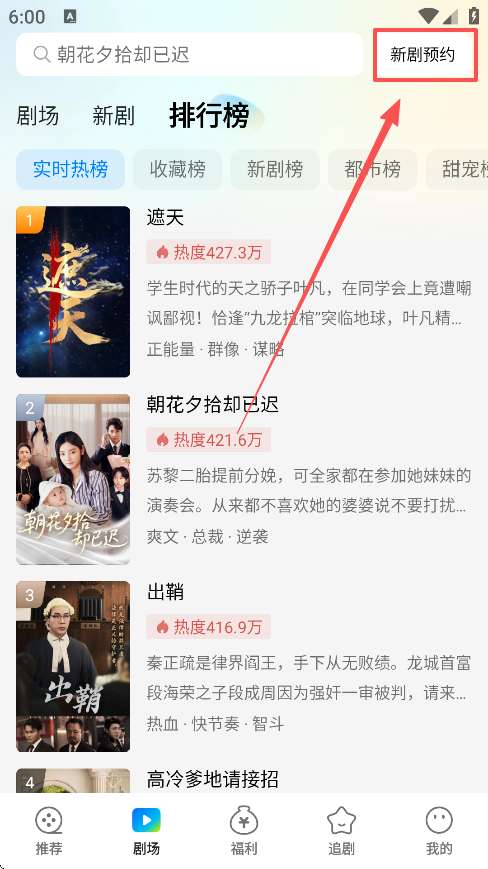 1、在页面右上角的新剧预约