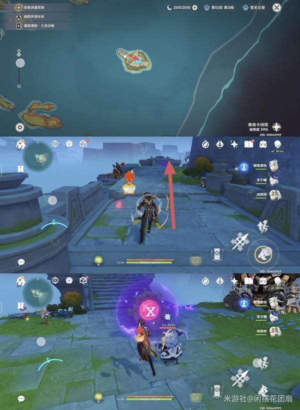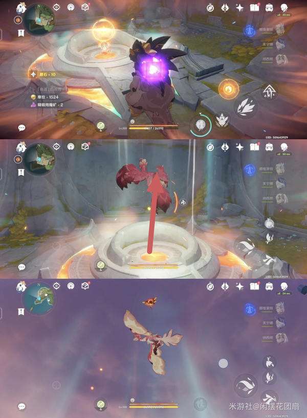 击碎所有标靶后,出现游隙灵道,进入灵道前往浮空岛,顺便解锁一个传送点