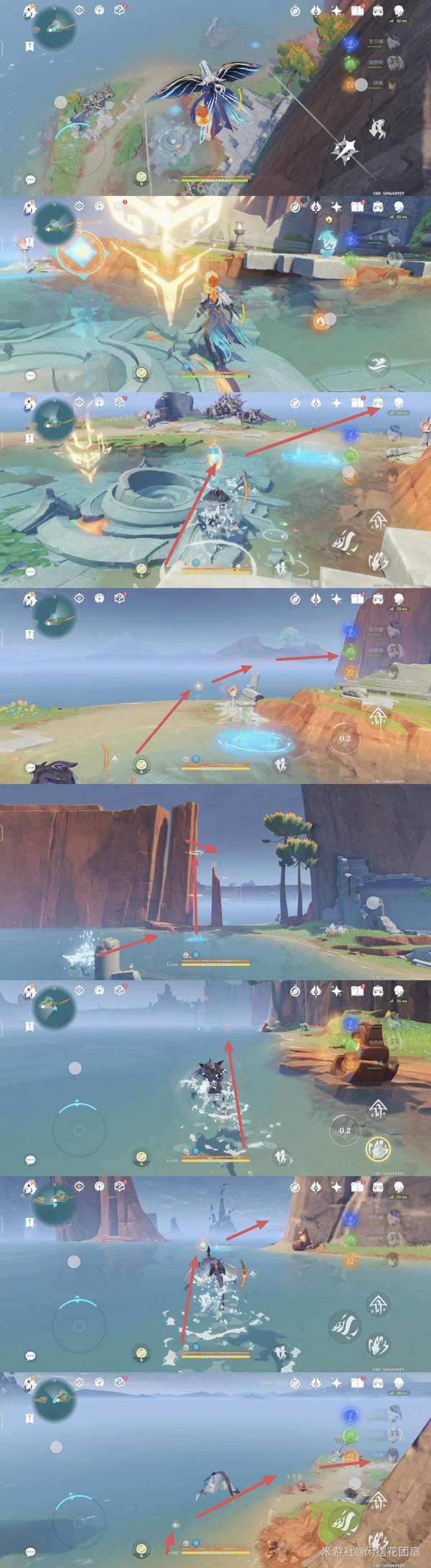 来到山下水池处,魂附鳍游龙,跟着箭头游,攻击标靶