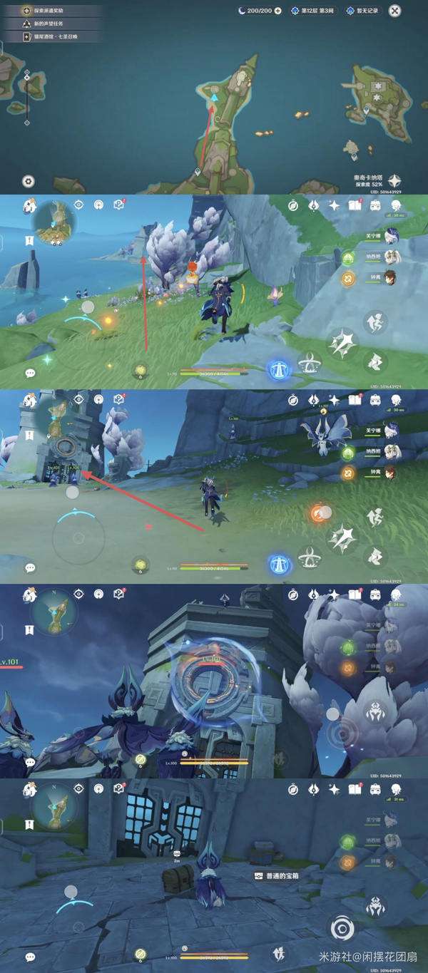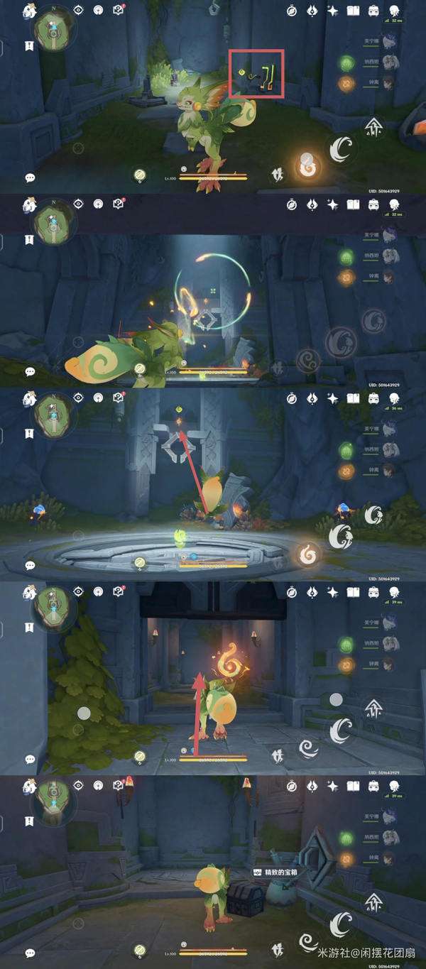 从传送点出发,跟着箭头走,魂附暝视龙,长按技能对准遗迹上方的刻录环,进入遗迹可获得一个普通宝箱