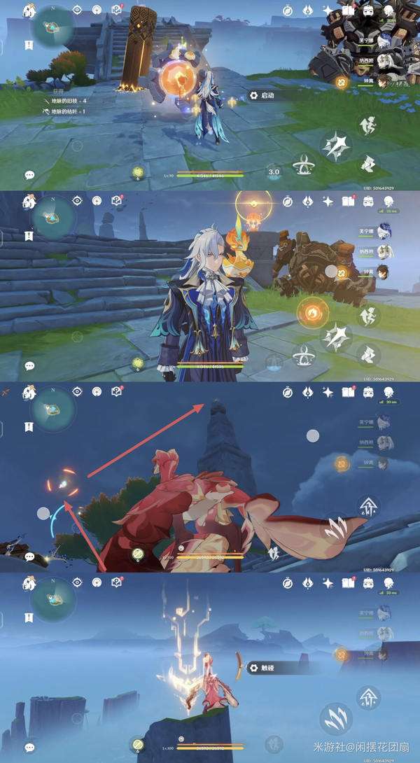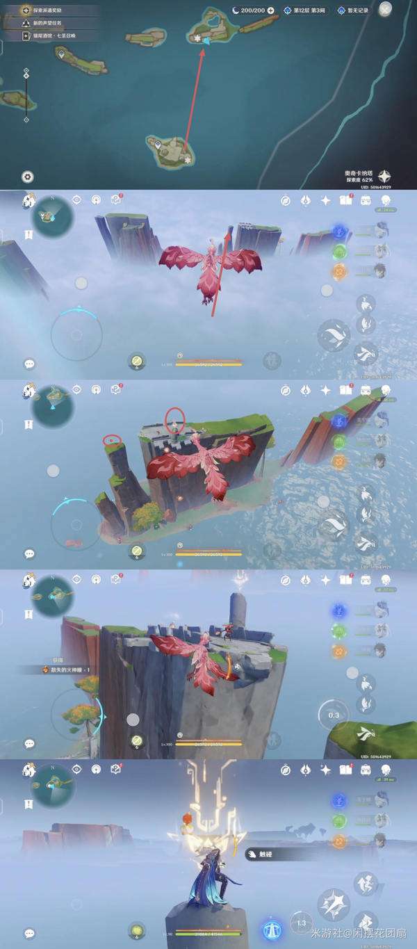 借助第四处的风场飞到第五处烬火炽燃解谜,可顺便获得一个火神瞳,触碰铭印