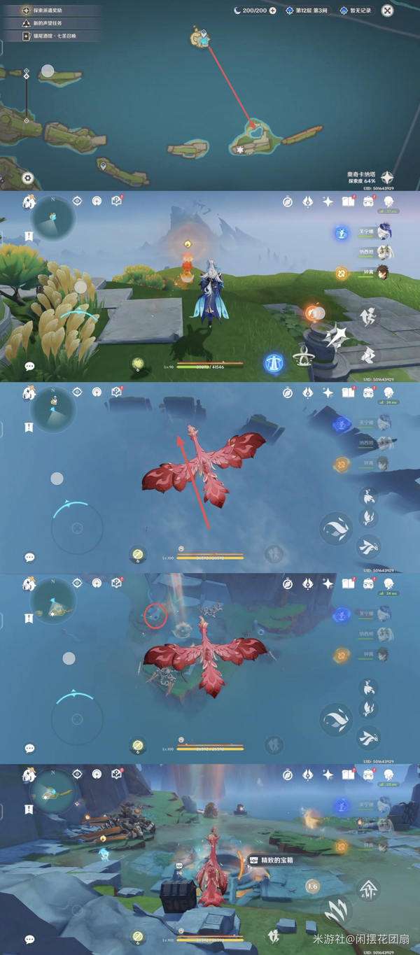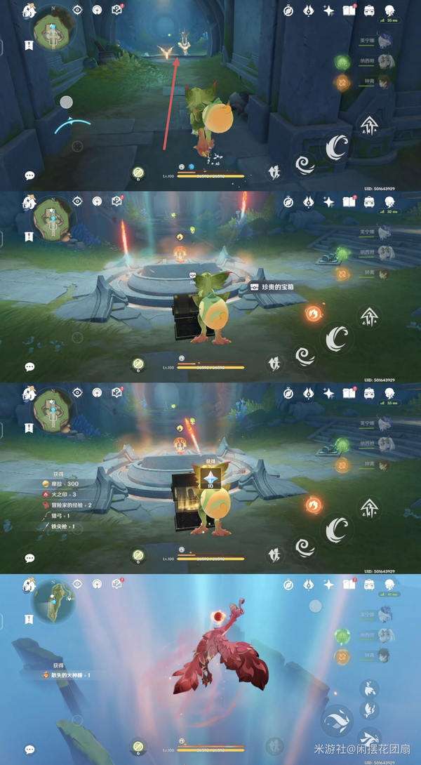 回到中央,可获得一个珍贵宝箱,解谜完成,魂附绒翼龙借助风场往上飞可获得一个火神瞳