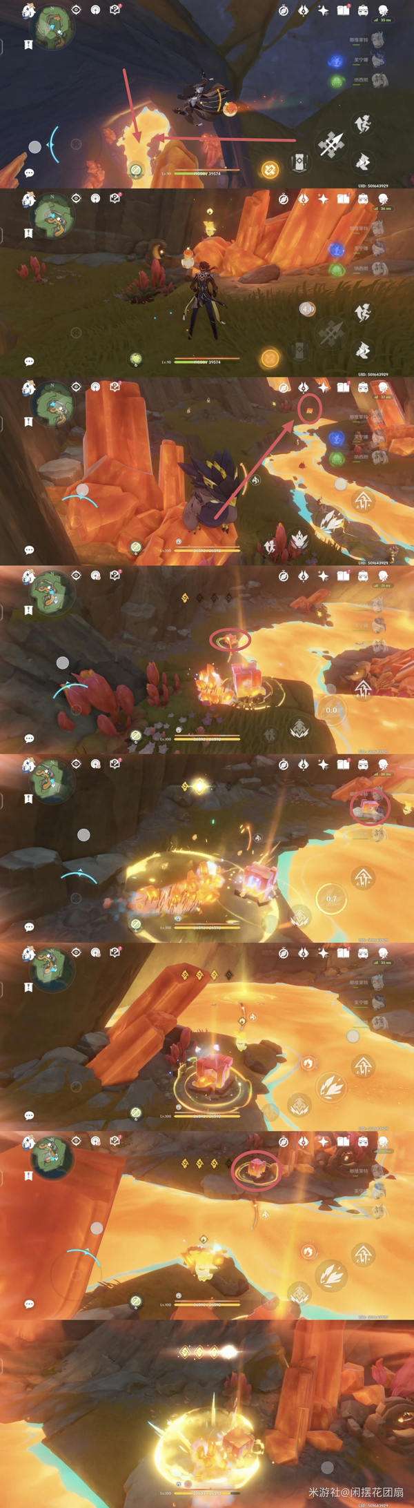 跟着箭头走,跳下去到岩浆旁,魂附嵴锋龙,攻击四处结晶