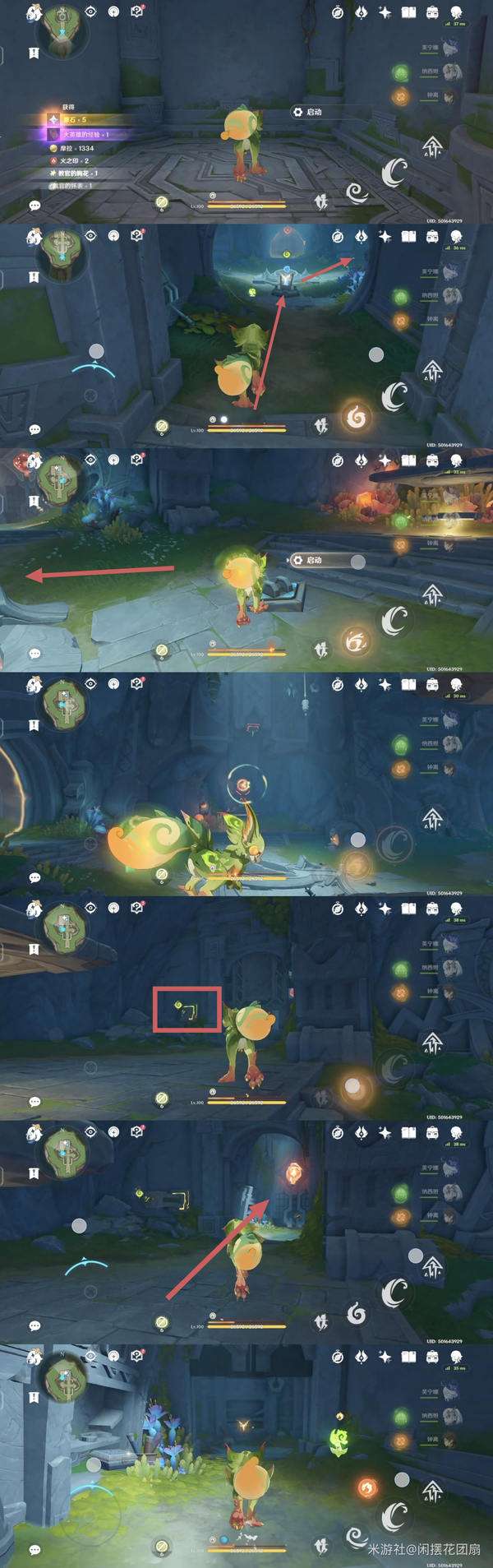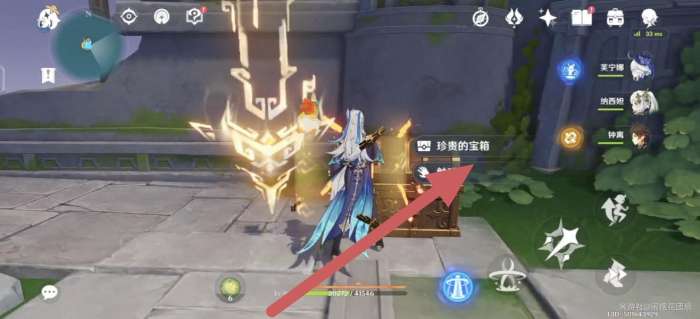 跟着箭头走,跟着箭头走,启动升降台,触碰两个铭印,获得一个珍贵宝箱