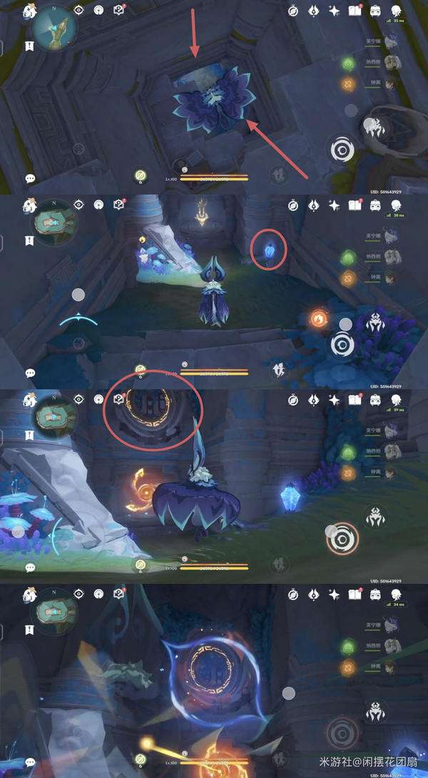拉动钩索,打开门,跟随铭印回到中央,拾取蓝球,拉动上方的钩索,发射到装置上,靠近铭印即可,旁边可获得一个火神瞳