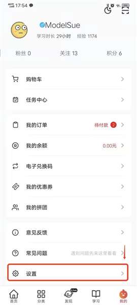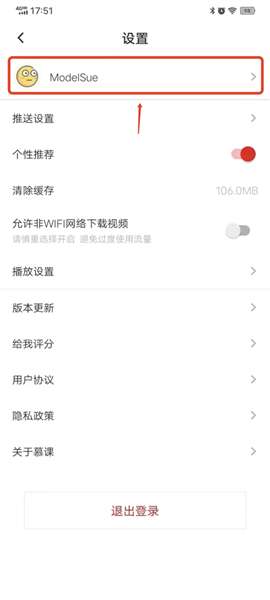 2、点击「设置」,进入设置页面,找到个人头像入口