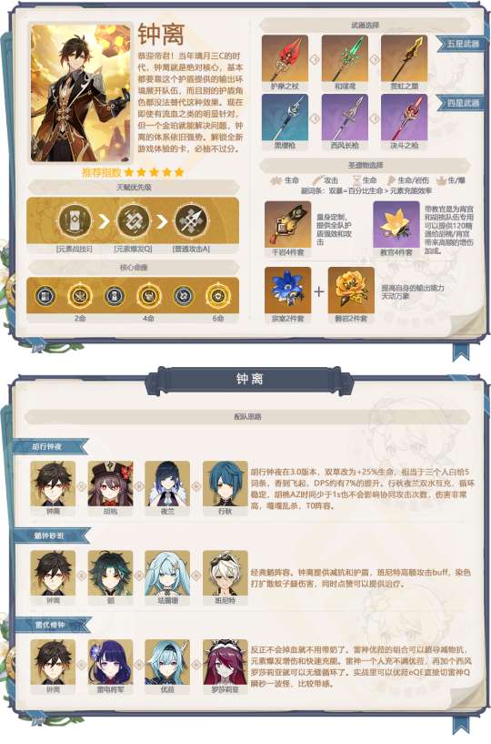 2、钟离抽取建议:钟离在生存能力方面仍然是顶级角色,对于技术力不足的玩家来说,拥有钟离是必不可少的。钟离也在特定队伍中非常有用。如果有条件的话,建议抽一个钟离。如果资源有限,可以先观望一下华丽宝宝和差不多巫师再做决定。不过值得注意的是,钟离在钟离命座收益方面的表现并不好,不太值得推荐。