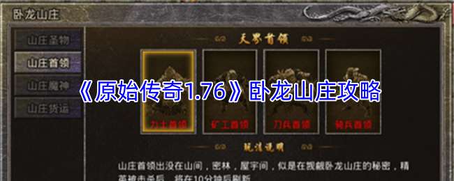 《原始传奇1.76》卧龙山庄攻略: