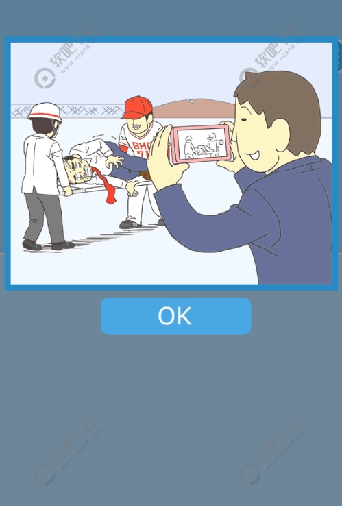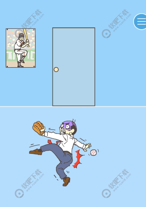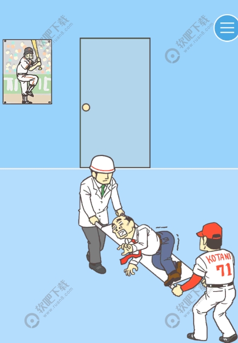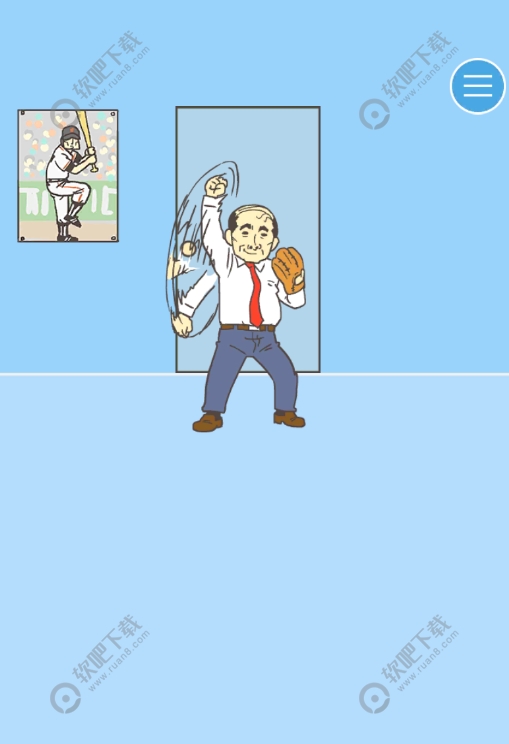 2、我们将棒球手套给中间场景的上司之后,将棒球给他,他会因为打棒球闪到腰;