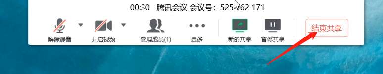 共享完成,将鼠标放在桌面上方,点击结束共享。
