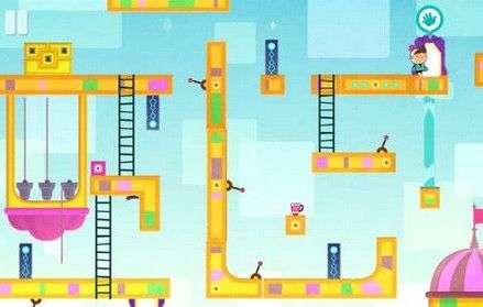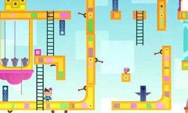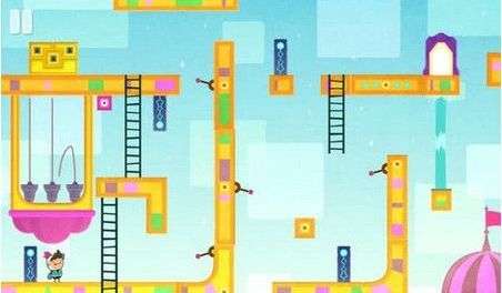 12.来到所处的人物位置,也就是可以触发铃铛的绳索下端(正视角在上方位置)。依次点击中间的绳索、右边的绳索、左边的绳索触发铃铛,即可打开宝箱。但是有一点需要注意的是,不知道玩家有没有注意到地图中有一个红色的小箱子,那个小箱子一定不能和主角在同一个水平线上,否则铃铛是触发不了的。正确做法是直接将它扔到画面下方即可。打开宝箱后,我们获得沙漏信物,原路返回通过第3关。