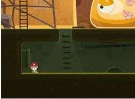 3.向右走,爬上楼梯直到上到高台,点击水管,放下,这时候不要开水,顺着管道下来,插管到怪物上