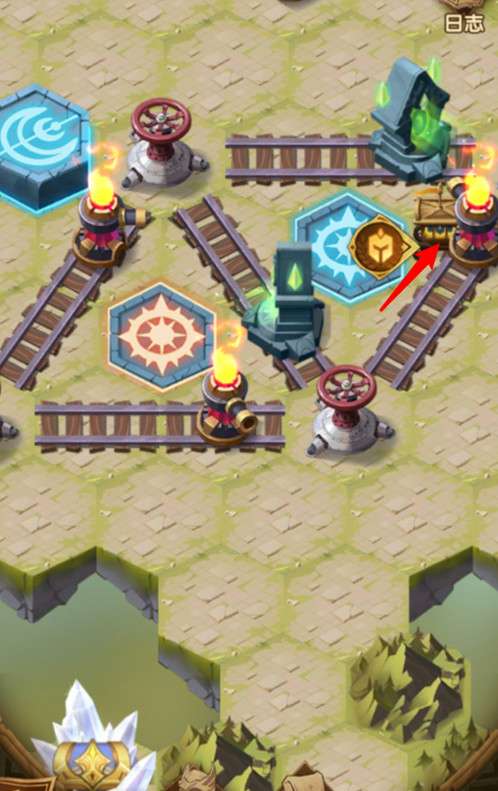 挑战后,移动轨道位置,再次点燃下图指示的炮台。