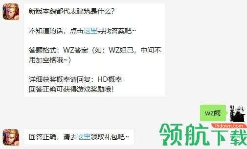 今天王者荣耀每日一答的题目是“新版本魏都代表建筑是什么”下面小编为大家带来今日份答案,每日持续更新,欢迎大家继续关注我们!