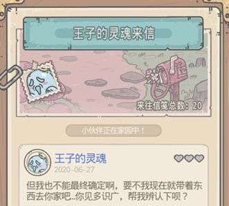 玩家在接到任务后,需要检查自己的来信,如果看到王子的灵魂说已经到了家园后,在伙伴那里就能找到王子的灵魂,