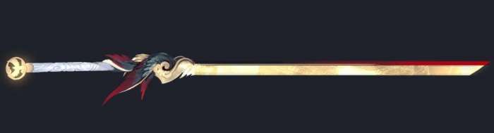 武器设计上融入飞鹰元素,飞鹰的翅膀作为剑柄,金色剑身灼灼如星。