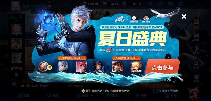 就在昨天的时候,玩家们期待的夏日盛典终于出现在游戏中,玩家可以通过游戏对局,获得专属的道具兑换相对应的奖励。其中在这次的活动中,和玩家们告别依旧的内测专属皮肤,再一次出现在玩家的眼前,三款内测皮肤玩家是可以免费获得的。