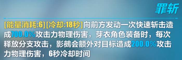 1)造成单次700%物理伤害,倍率不错,战斗中作为补伤害手段使用。