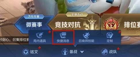 第一步:在游戏大厅中,点击底栏的【备战】按钮,然后点击【快捷消息】。