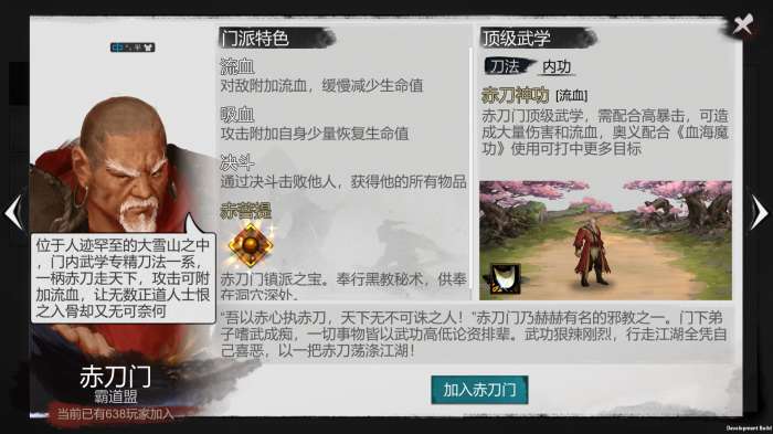 最赤刀门顶级武学,需配合高暴击,可造成大量伤害和流血,奥义配合《血海魔功》使用可打中更多目标