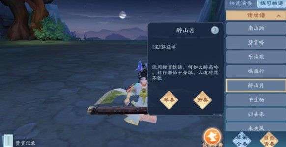 江歌:打开琴箫选择醉月山演奏全连触发任务。