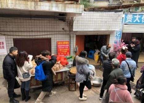 当天上午到达大营坡农贸市场,经过询问,记者在农贸市场里面的一个楼梯下方找到了这位走红网络的爆米花大叔。此时,大叔家门口已经围满了人,大家纷纷举着手机拍照、拍视频,甚至开起网络直播。