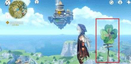 如下图所示,这是浮沉的位置,在图中可以红色方框的四叶草,玩家只需要使用风属性角色开启这个四叶草机关就能,打开一个风场,就能去到浮沉了。但是玩家飞到一半发现只能登上群玉阁前面的浮岛,没法真正登上群玉阁,接下来玩家需要根据任务指示和刻晴见面,然后通过刻晴玩家发现璃月港有地方可以直接传送到群玉阁。