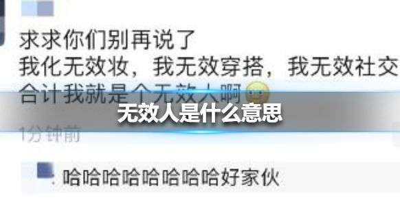 无效人:就是指做什么都徒劳无功的人,比如无效化妆、无效p图还有无效社交等,大家就会感慨原来我就是个无效人。