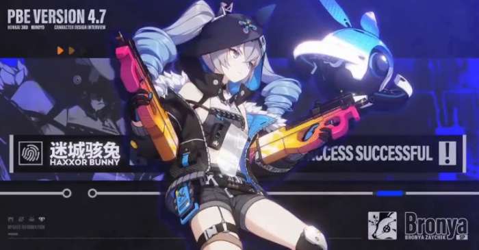 骇兔设定为“异能”属性,普攻以骇兔专用版P90冲锋枪为主武器,战斗方式类似于卡莲的“今样”与琪亚娜的“苍穹游侠”的结合,战斗中移动灵活,推测常规输出能力有限,且对玩家操作有一定要求。普攻最后一击召唤无人机助战,无人机存在时间25秒,存在期间会协同场上目标攻击敌人,极限闪避后可以直接触发普攻最后一击,并直接召唤一架无人机。