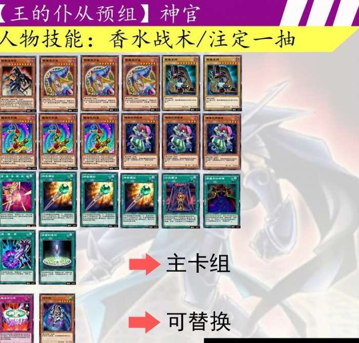 卡组思路:利用利真和彼得快速召唤黑魔术少女,利用贤者的宝石或黑魔术帷幕召唤黑魔导。之后直接解放召唤黑魔法神官,神官一出现游戏差不多也就结束了,怕魔法卡单解的话可以带张魔法干扰。