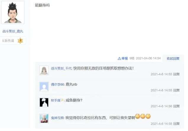 火影忍者手游的玩家得知秽土斑是策划鹿丸制作后出现了很大的争议,这些玩家认为策划鹿丸不会制作忍者,只会单纯的压场技能和抓取技能来凑出一个忍者。给他们这种印象的原因还是因为策划鹿丸制作的忍战我爱罗、半蛇兜和秽土二代确实都有一些共同性,而且半蛇兜在当年的高招忍者中应该也算是接近垫底的存在了。所以,部分玩家对于策划鹿丸的印象不是太好,看到自己喜欢的秽土斑由他来制作,很显然是不太满意的。