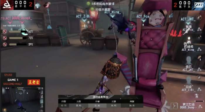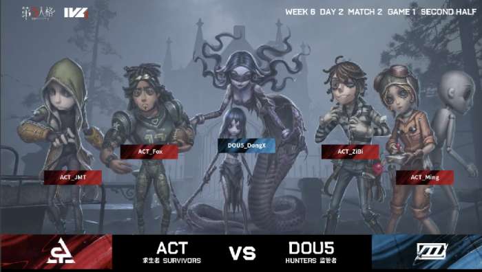 今天将进行的是第五人格2021IVL夏季赛常规赛的第6周第2天第2场中的第1局比赛,对阵双方为ACT战队和DOU5战队。