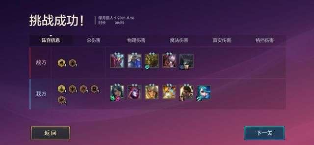 这一章里一共有三关,三关的难度也是逐渐递增的,每一关都是固定阵容,但是装备的选择与站位就要看玩家本身对游戏的理解了,每一关对应的羁绊都会显示在章节界面,对于羁绊和英雄还不是很了解的玩家也不用担心,可以进入关卡后点击羁绊与英雄就会有相对应的介绍了。