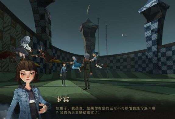 既然已经确定了是魁地奇,那么我们只需要去魁地奇场就可以了,骑着扫帚飞过去之后,我们可以看到罗宾已经等在那里,然后降落对话,然后陪她打一场,今天的巧克力蛙卡片就到手啦。