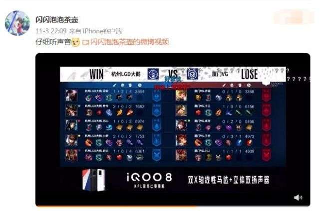 目前,对应比赛的KPL录播视频,已经被官方直接剪辑,搜索LGD对阵VG的比赛录播,会发现第四局比赛17分43秒之后的内容,已经被全部剪辑掉。但当时有不少看直播的观众,将这一段直播视频保存了下来。