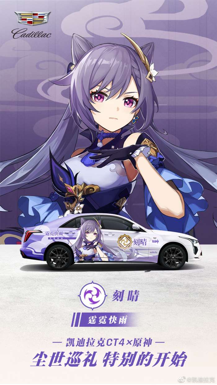 当原神与凯迪拉克CT4相遇,一场特别的冒险之旅便已开始,来自“提瓦特”大陆的刻晴、芭芭拉、魈、香菱将与定制凯迪拉克CT4痛车一起尘世巡礼特别的开始,各位旅行者,准备好了吗?11月19日-28日,刻晴和魈定制痛车将现身广州国际车展凯迪拉克展台,一起去现场打卡吧!